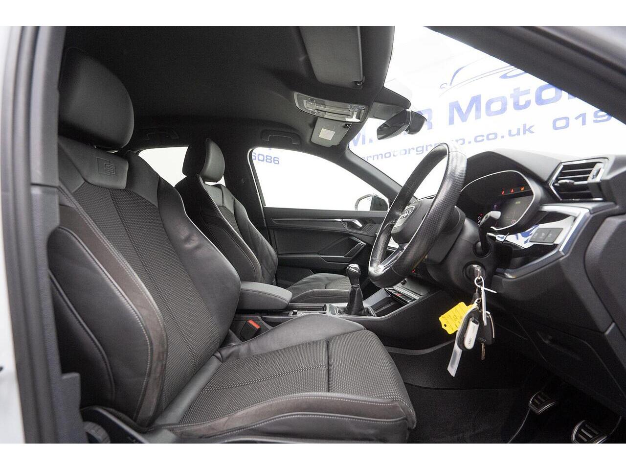 This 2021 Audi Q3 TFSI S line presents an exceptional ownership proposition with its remarkably low mileage of just 29324 miles, a testament to its single owner history. This Euro 6 compliant model boasts a responsive 1.5 litre petrol engine, offering an acceleration of 0-62mph in 9.5 seconds. Inside, you'll find the sophisticated Alcantara Frequency Twin Leather sport seats, complete with S embossing and stylish rock grey stitching, complemented by a practical storage package and dual zone electronic climate control for ultimate comfort. The Bluetooth interface ensures seamless connectivity, while rear parking sensors provide added peace of mind during manoeuvres.