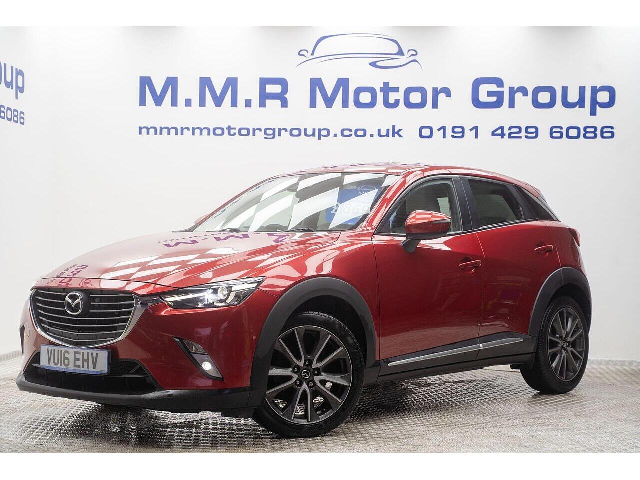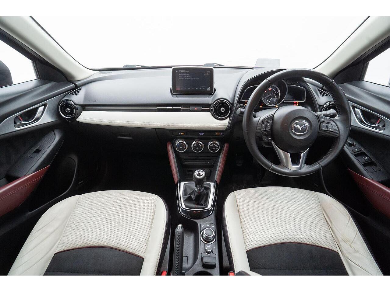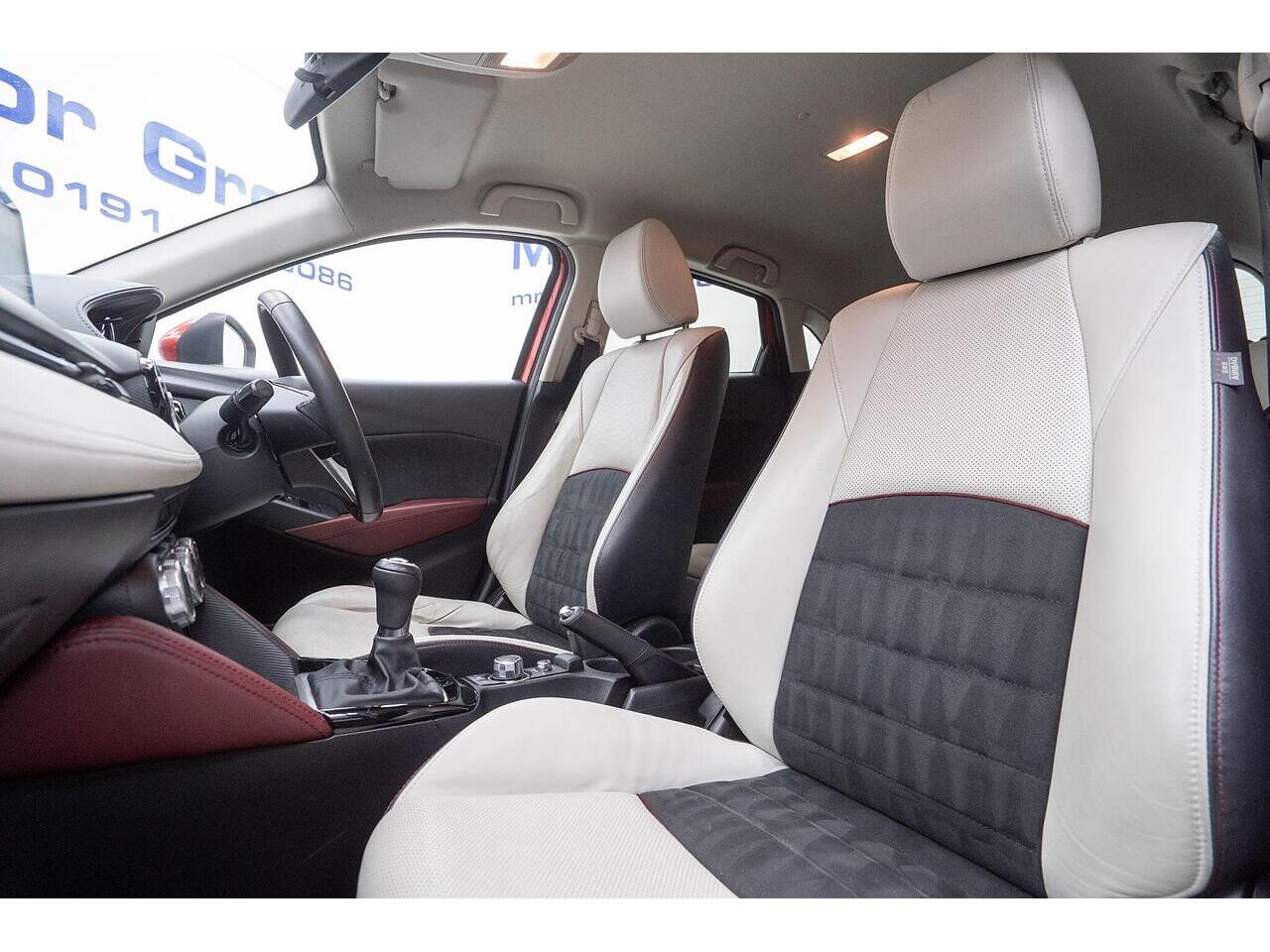 This Mazda CX-3 SKYACTIV-D Sport Nav presents an exceptional opportunity with its remarkably low mileage of just 48,000 miles. This stylish compact SUV boasts a fuel efficient 1.5L Diesel engine, meeting Euro 6 emissions standards. Inside, you'll find a premium Leather Lux Suede interior in Stone Black with striking Red Piping, complemented by Smart Keyless Entry and LED headlights for convenience and visibility. The Sport Nav trim also includes a comprehensive Safety Pack, featuring Blind Spot Assistance (BLIS), and a reversing camera to aid with parking.