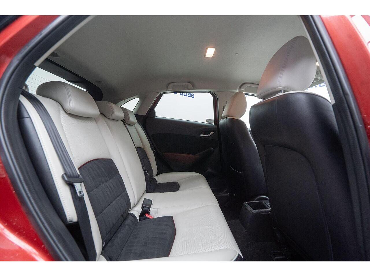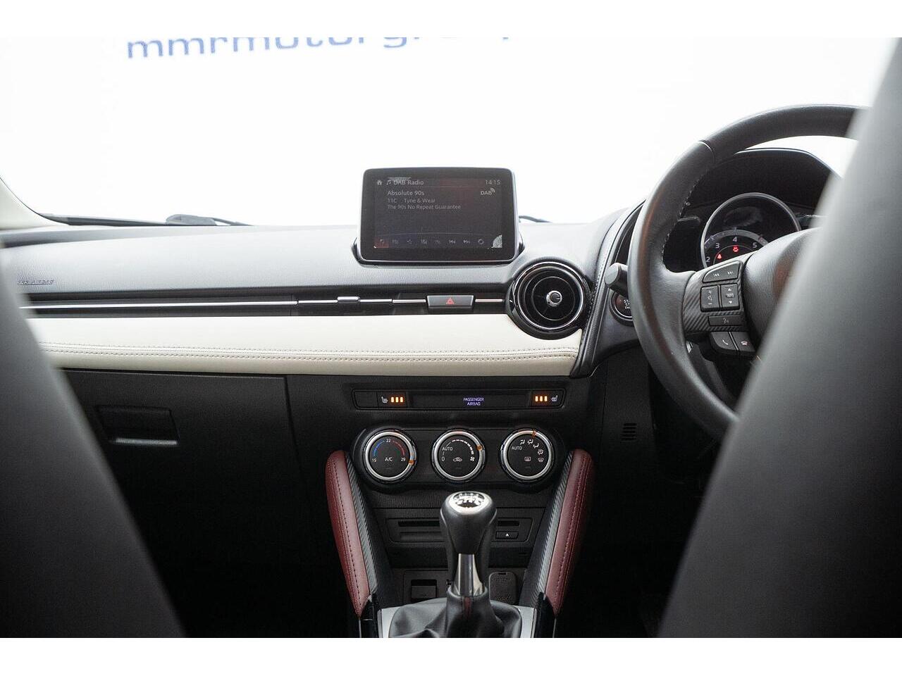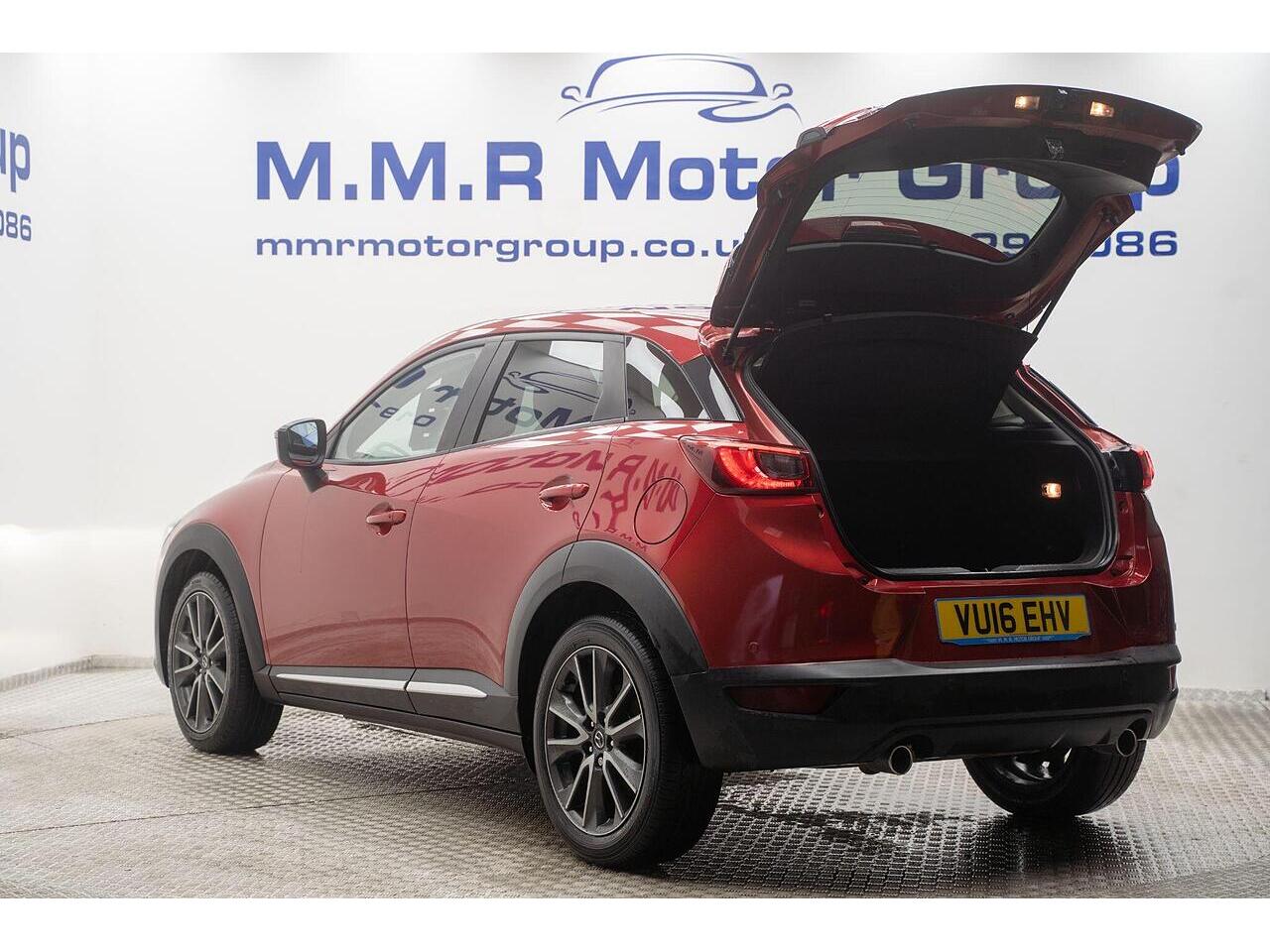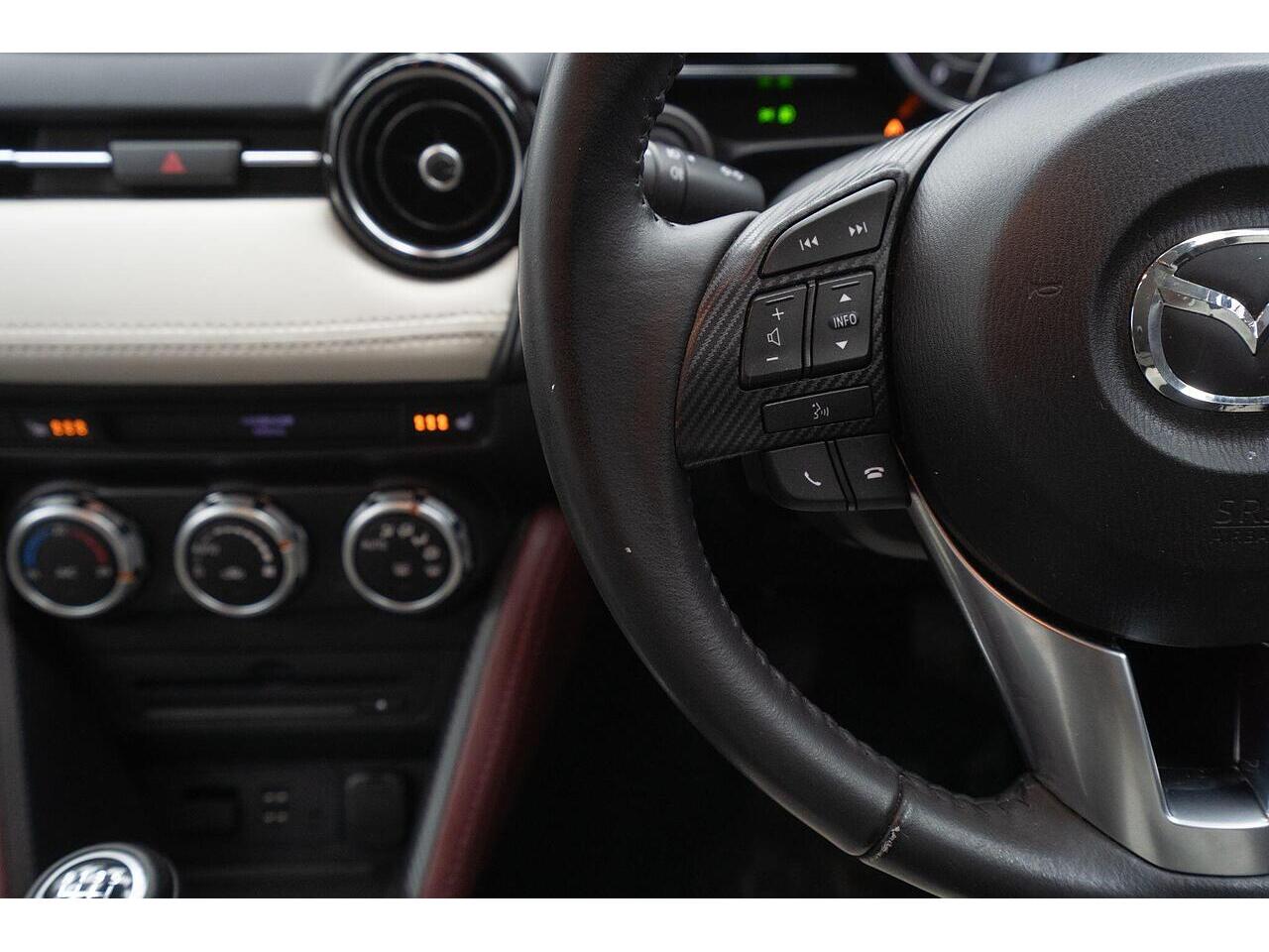 This Mazda CX-3 SKYACTIV-D Sport Nav presents an exceptional opportunity with its remarkably low mileage of just 48,000 miles. This stylish compact SUV boasts a fuel efficient 1.5L Diesel engine, meeting Euro 6 emissions standards. Inside, you'll find a premium Leather Lux Suede interior in Stone Black with striking Red Piping, complemented by Smart Keyless Entry and LED headlights for convenience and visibility. The Sport Nav trim also includes a comprehensive Safety Pack, featuring Blind Spot Assistance (BLIS), and a reversing camera to aid with parking.