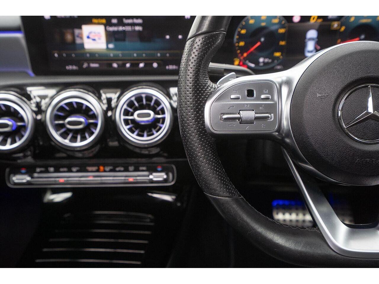 This 2020 Mercedes Benz CLA200 AMG Line Premium Plus 2 with Glass Panoramic Sunroof - AMG body kit and Alloys, offers a sophisticated driving experience with its Euro 6 compliant 1.3 litre petrol engine. As an AMG Line model, it boasts a sporty aesthetic and is equipped with the advanced Driving Assistance Package, which includes Blind Spot Assistance and Adaptive Cruise Control for enhanced safety and convenience. You'll also appreciate the premium Mercedes Benz Sound System, dual Bluetooth interfaces for seamless connectivity, and the THERMOTRONIC luxury automatic climate control for personalised comfort.