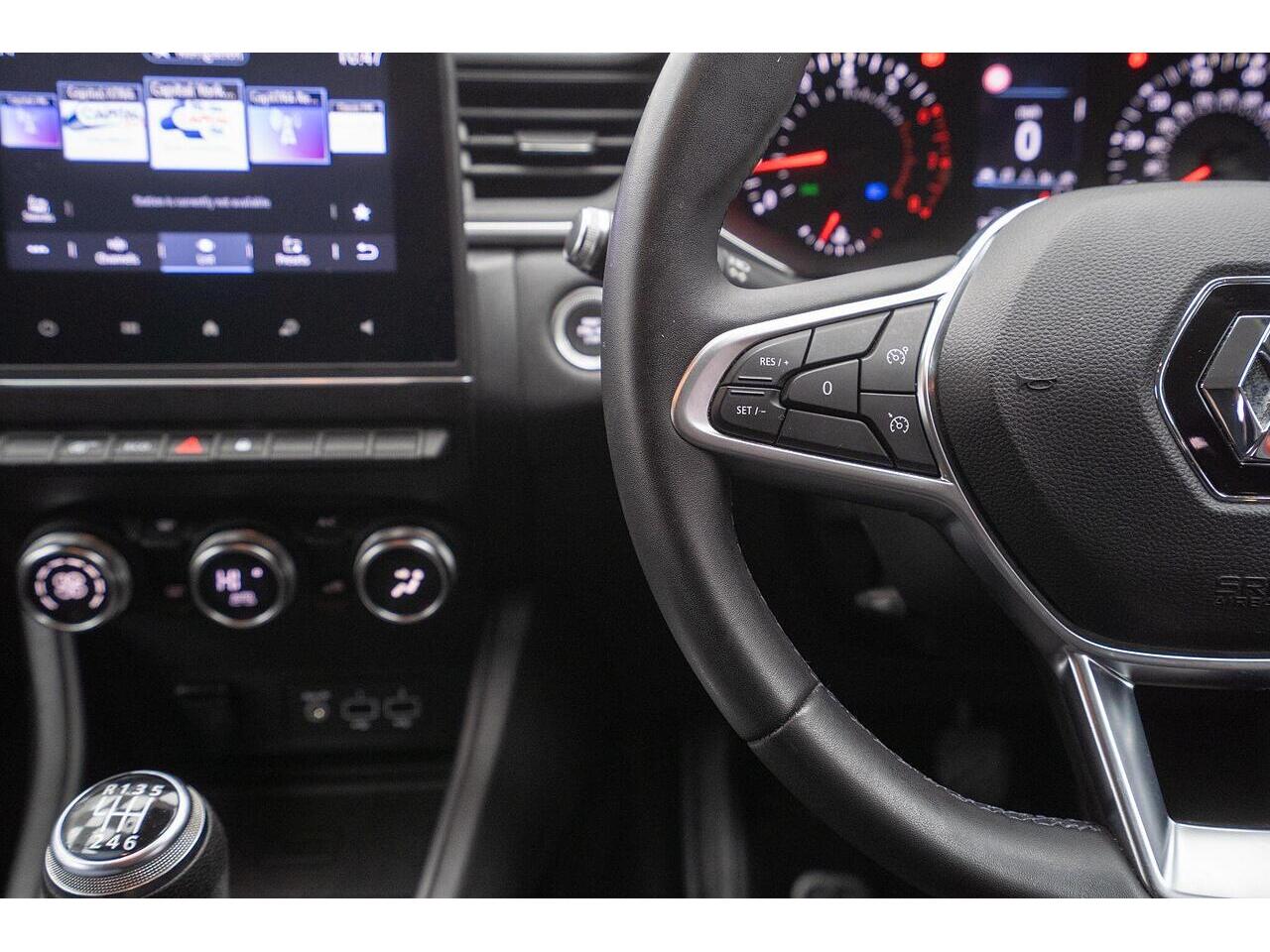 38,711 miles, This 2021 Renault Captur TCe Iconic is a superb example, having been owned by just one person and boasting a clear vehicle history check. This stylish SUV features a 1.3 litre petrol engine, meeting Euro 6 emissions standards, and comes in an attractive grey exterior with a matching grey exterior colour pack. The Iconic trim level includes eye catching 17 inch Bahamas diamond cut alloy wheels with grey inserts, and full LED front and rear headlamps that integrate daytime running lights. For added convenience, this Captur is equipped with a comprehensive Parking Pack, which includes front and rear parking sensors and a rear parking camera, making manoeuvring in tight spaces effortless.